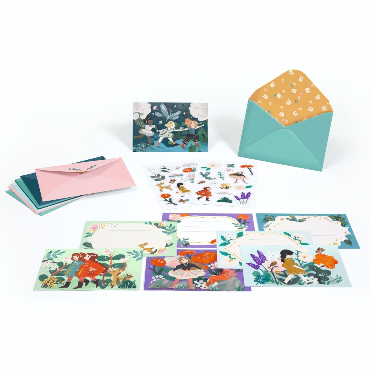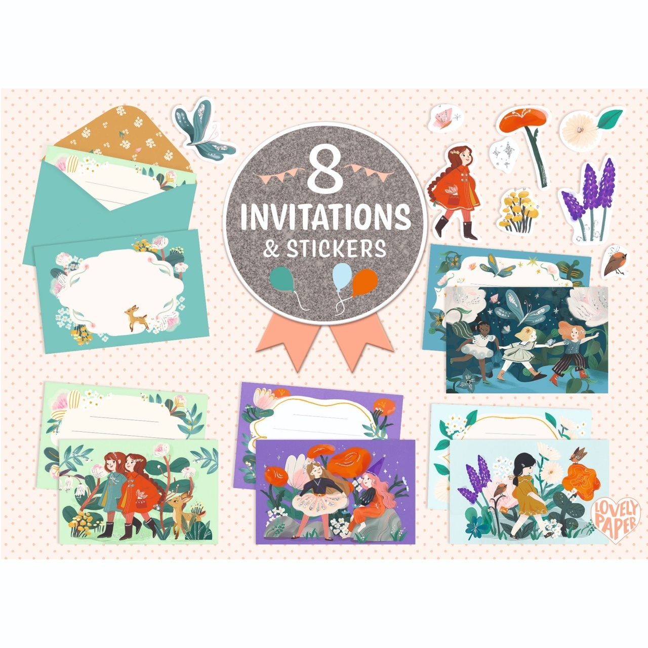 Set de invitații - Prietenii din grădină 🌸 Un set creativ și stilat, pentru copiii care doresc să creeze invitații personalizate pentru ocazii speciale! Cu ilustrații fermecătoare inspirate din natură, acest set conține tot ce au nevoie copiii pentru a crea invitații memorabile. Poți trimite un gând bun sau o invitație cu stil! Lovely Paper de la Djeco este o colecție de articole de papetărie rafinate și delicate, cu ilustrații frumoase pentru a înveseli viața de zi cu zi a copiilor și adulților. Include: 8 carduri ilustrate, 8 plicuri asortate și 2 coli de stickere tematice. Confecționat din hârtie și carton certificat FSC®. Articol decorativ. Nu este o jucărie. AVERTISMENT: Contraindicat copiilor sub 3 ani. Producător: Djeco, Franta.