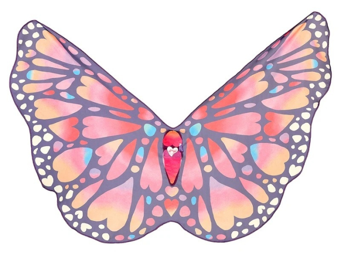 Aripi de fluture Aripile de fluture Souza! sunt realizate din material ușor și fluid, cu un imprimeu vibrant inspirat din fluturele monarh: fond mov-închis, cu pete în degradeuri de roz, portocaliu, roșu și turcoaz. Dimensiunea de aproximativ 85 cm înălțime asigură un efect vizual generos când copilul le desfășoară complet. Se fixează simplu cu benzi elastice pentru umeri și degete, fără ajustări complicate. Caracteristici: Material: 100% poliester, ușor și fluid Imprimeu multicolor tip fluture monarh: mov, roz, portocaliu, roșu, turcoaz Dimensiune mare pentru efect vizual spectaculos, aprox. 85 cm Prindere: benzi elastice pentru umeri Vârsta recomandată: 3-10 ani Varsta recomandata: 3 - 10 ani. Producator Souza!