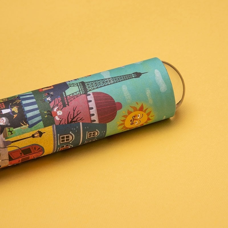 Caleidoscop O zi in Paris Descoperă magia lumii printr-o jucărie optică fascinantă! Inspirat de atmosfera romantică a capitalei Franței, setul surprinde atât farmecul Parisului în lumină de zi, cât și misterul său sub lumina nocturna. Prin lentilele speciale, orice privire devine un spectacol vibrant de modele abstracte și culori care se multiplică! Ce îl face special: Lentilă rotativă tip "teleidoscop" - transformă tot ce vezi în mozaicuri animate Carcasă din carton reciclat, rezistent, cu finisaj lucios Pentru explorare vizuală, joacă sau cadou creativ Dimensiuni: Ø 4 cm x 19 cm Vârsta recomandată: 6-103 ani. Fabricat din carton reciclat și plastic durabil. AVERTISMENT: Contraindicat copiilor sub 3 ani. Producător: Londji, Spania 🇪🇸. Proiectat și fabricat în Barcelona