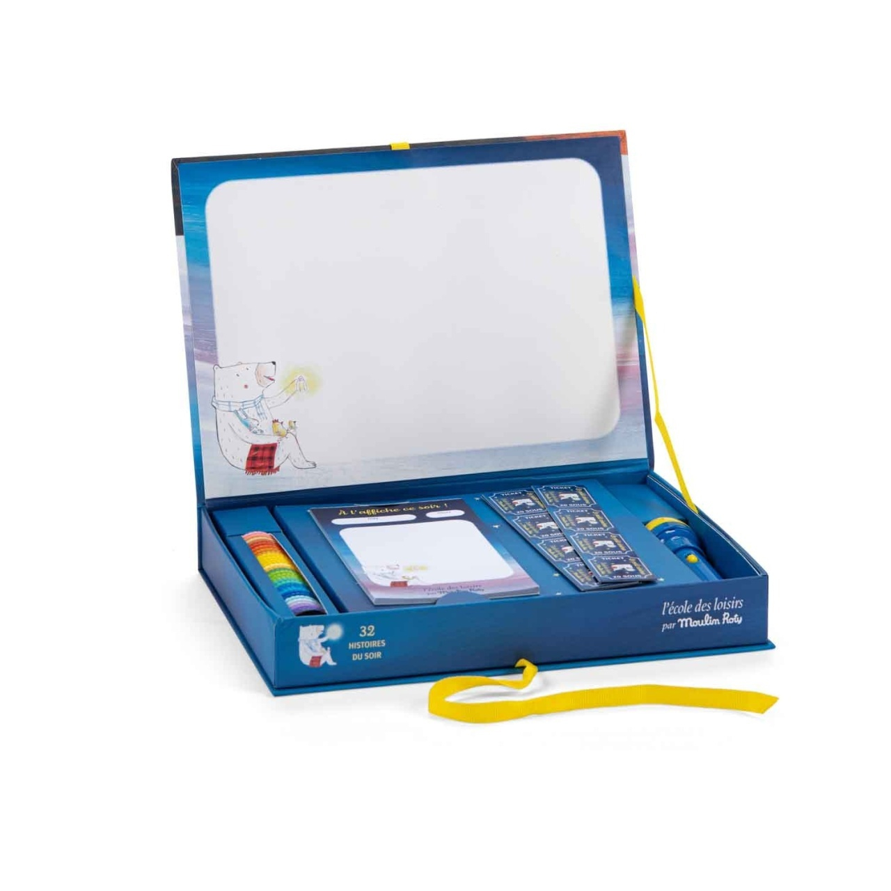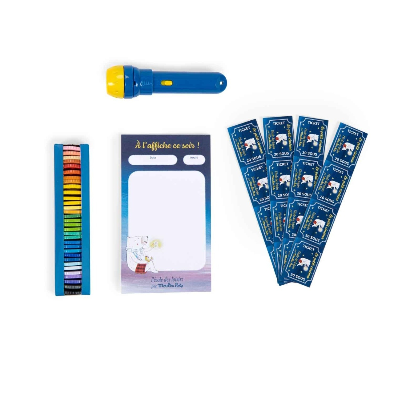 Joc nostalgic Retro cinema - Scoala de vara Adu magia cinematografului în spațiul tău. Setul conține o lanternă proiector, 32 de discuri ilustrate, un bloc de programe și bilete de cinema, pentru a împărtăși aventurile cu prietenii și familia. Fiecare disc spune o poveste emblematică din cărțile École des Loisirs , proiectând imaginile pe perete sau pe suprafața unei cărți. Micii spectatori se vor bucura de experiența interactivă a poveștilor, combinând lectura cu jocul vizual și socializarea. Lanterna funcționează cu baterii (3 buc incluse în set). Vârsta recomandată: + 3 ani. Confecționat din materiale non-toxice, cu vopsele non-toxice, conform reglementărilor EN71&ASTM. AVERTISMENT: Contraindicat copiilor sub 3 ani, conține piese mici, pericol de sufocare. A se utiliza sub directa supraveghere a unui adult. Îndepărtați ambalajul înainte de a oferi jucăria copiilor. Producător: Moulin Roty , Franța