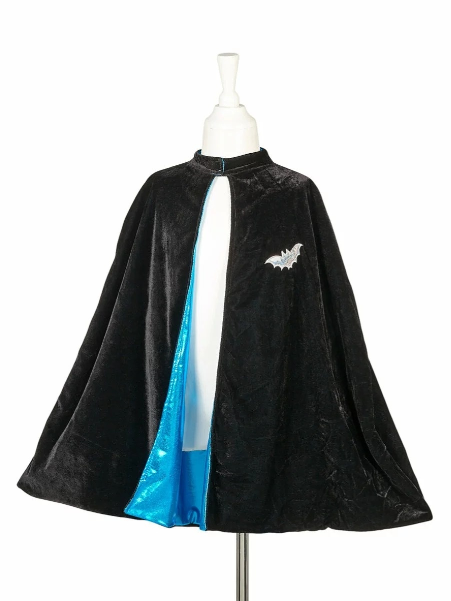 Pelerina reversibila Supererou / Liliac pentru copii Pelerina Supererou  cu design reversibil ingenios, oferă două costume într-unul singur: pe o parte un supererou curajos, iar pe cealaltă o creatură fantastică inspirată de lilieci. Realizată din materiale ușoare și confortabile, pelerina se poartă peste hainele obișnuite și se fixează simplu la gât cu velcro. Designul spectaculos, cu stele, fulgere si lilieci. Beneficii: 2 în 1 (reversibilă) – două personaje într-un singur produs Unisex – potrivită pentru fete și băieți Efect vizual spectaculos – culori și detalii tematice (stele, fulgere, lilieci) Durabilă – material rezistent pentru utilizare frecventă Recomandată pentru carnaval, petreceri tematice sau joacă zilnică. Dimensiuni si mărime: Mărime: 4–8 ani (104–128 cm) Lungime pelerina: aprox. 65 cm 👉 Lungimea este măsurată de la gât până la baza pelerinei. Material: 100% poliester. Articol vestimentar.  Producator Souza!