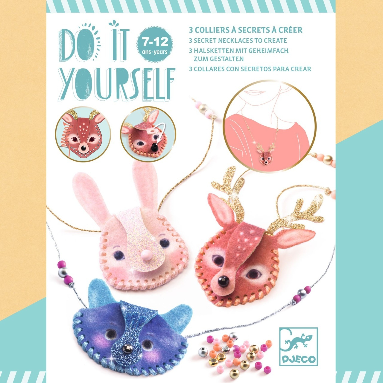 Joc creativ DIY Coliere secrete Set pentru a crea 3 coliere secrete „strălucitoare”. Urmând instrucțiunile simple și detaliate, copiii vor putea asambla coliere în timp ce învață să coasă. Fiecare colier are un pandantiv care se deschide pentru a ascunde un mic secret... Lungimea colierelor se poate regla ușor cu ajutorul șnurului glisant. Finisaj frumos, care combină pâsla mată cu fir metalic strălucitor, împodobit cu mărgele lucioase și mate. Fiecare colier are un pandantiv care se poate deschide, în care copilul poate pune un mic suvenir. Instrucțiunile detaliate pas cu pas îi ghidează pe copii în procesul de creație. Conținut: 3 pandantive pre-perforate din pâslă, 3 suluri de ață de cusut, 3 suluri de șnur subțire metalic, 3 ace, 3 (+1) dispozitive de înfășurat ața, 3 nasturi cu șurub, sortiment de 26 mărgele colorate, 3 dispozitive de închidere glisante, 1 set de instrucțiuni generale pas cu pas și 3 șabloane de urmat pentru fiecare colier. Vârsta recomandată: 7 - 12 ani. Fabricat din hartie si carton certificate FSC®. AVERTISMENT: Contraindicat copiilor sub 3 ani, conține piese mici, pericol de sufocare. A se utiliza sub directa supraveghere a unui adult. Producător: Djeco.