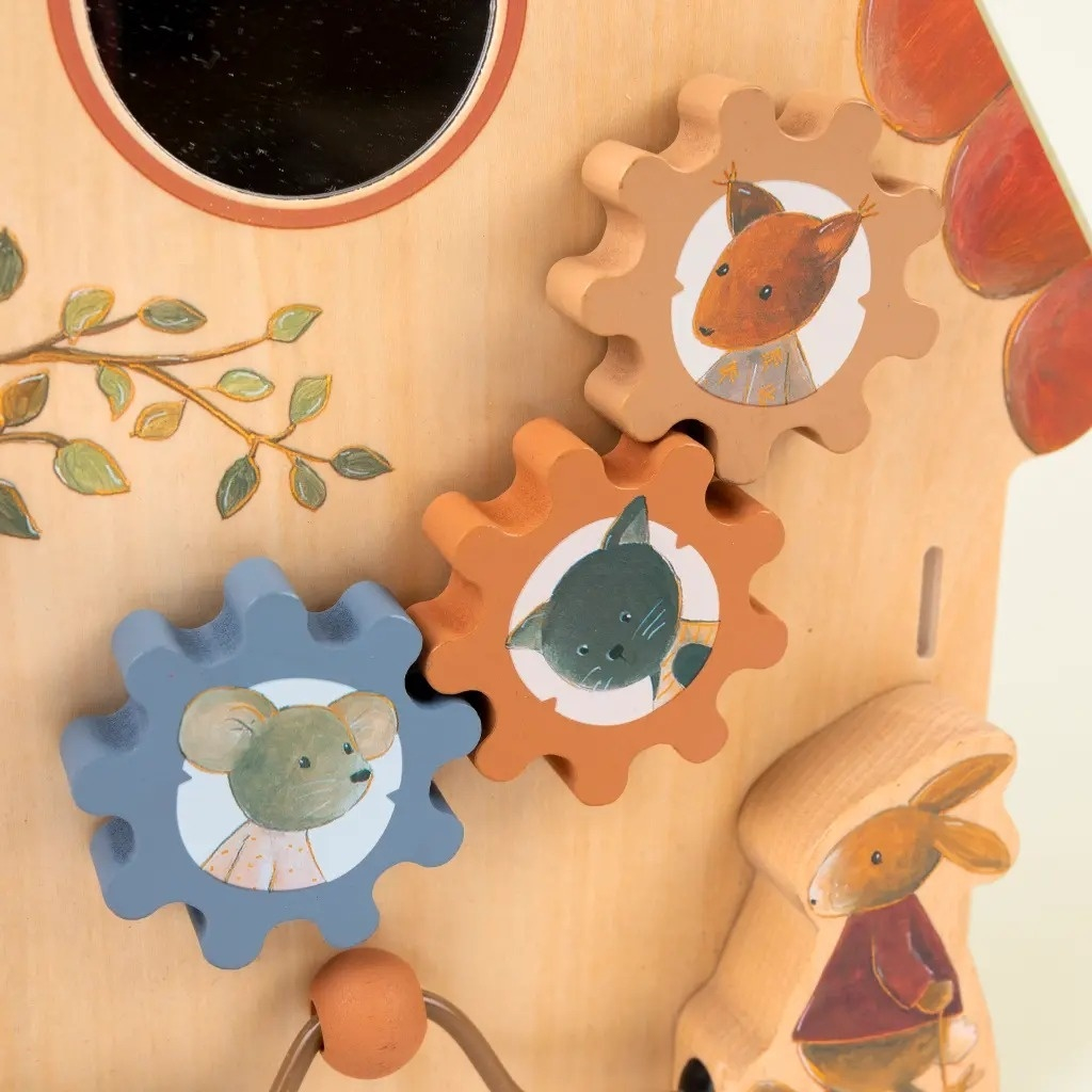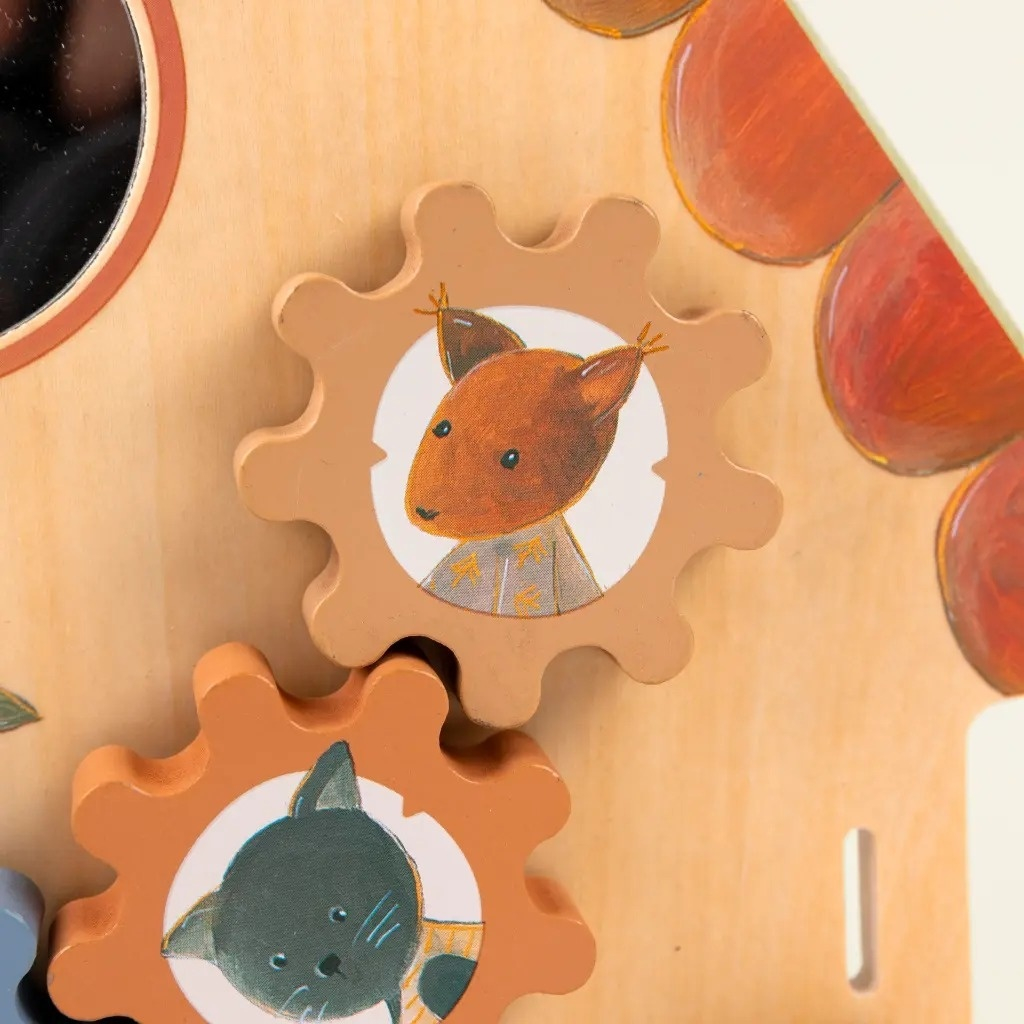 Casuta din lemn cu activitati Jocul din lemn cu activități invită mânuțele curioase să întoarcă, să ruleze și să exploreze detaliile fermecătoare ale căsuței. Beneficii: Dezvoltă motricitatea fină și coordonarea: explorarea texturilor și mecanismelor activează dexteritatea de bază. Stimulează curiozitatea și concentrarea: fiecare detaliu invită copilul să observe, atingă și încerce o nouă acțiune. Joacă calmă și interactivă: transformă momentele liniștite în oportunități de descoperire. Configurează abilități practice: mișcările repetate susțin înțelegerea cauză-efect și răbdarea. Design durabil și prietenos cu copilul: lemn natural, marginile rotunjite și finisaje sigure. Dimensiune 30 x 30 cm. Vârsta recomandată: +10 luni. Confecționat din metal si lemn. AVERTISMENT! A se folosi sub directa supraveghere a unei persoane adulte. Producător: Egmont Toys, Belgia.