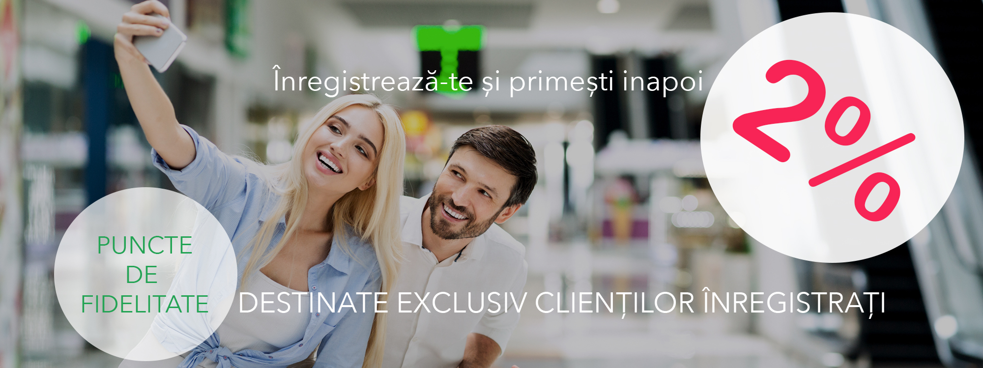 - La înregistrare primești 100 de puncte de fidelitate în valoare de 20 lei pe care să le folosești la prima comandă.